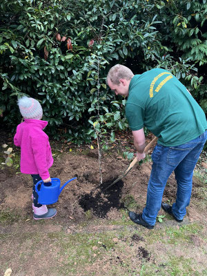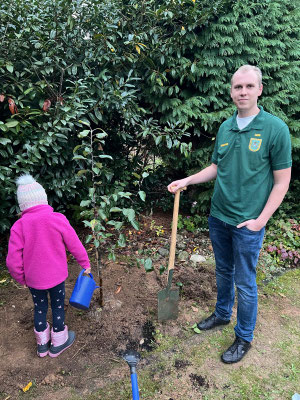 Trotz der stets herschenden Harmonie unserer beiden Vereine, erklärte sich der Heimatschützenverein natürlich ebenfalls bereit, einen solchen Baum zu pflanzen.
